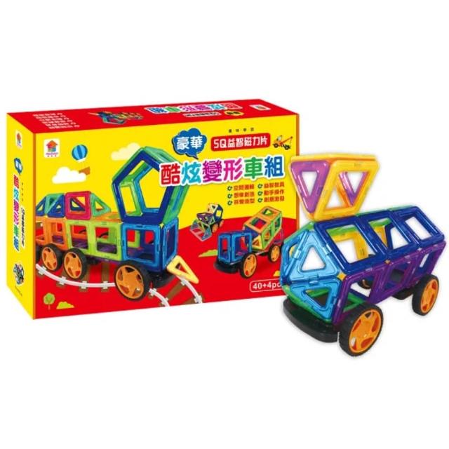 雙美生活文創雙美 5Q益智磁力片:酷炫百變車隊(12個三角形磁力片+18個正方形磁力片+2個長方形+4個等腰三角形+2個菱形+2個五角形+4組車輪+造型教學書)