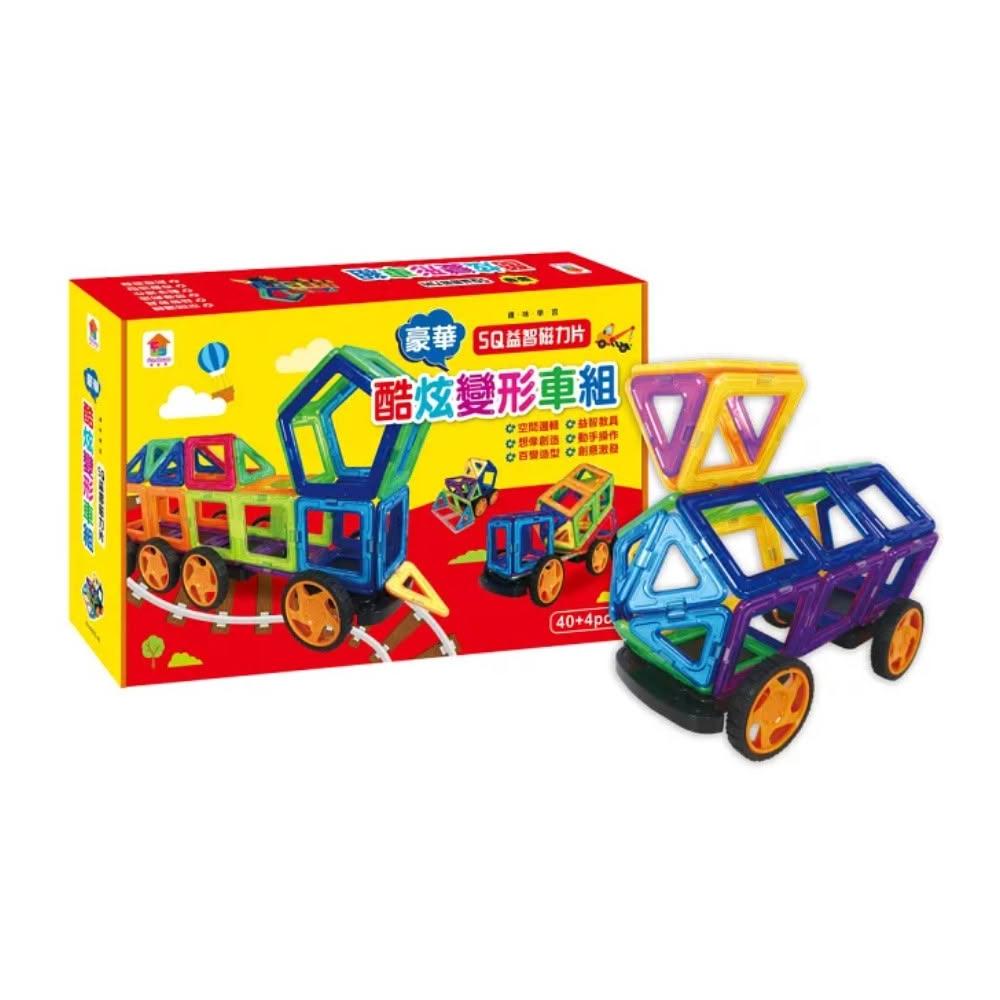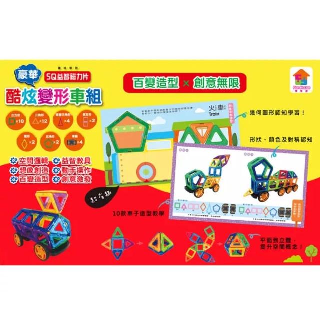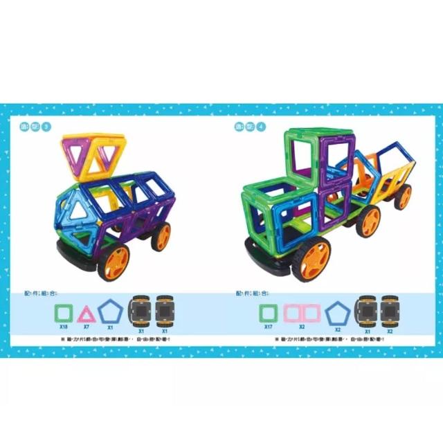 雙美生活文創雙美 5Q益智磁力片:酷炫百變車隊(12個三角形磁力片+18個正方形磁力片+2個長方形+4個等腰三角形+2個菱形+2個五角形+4組車輪+造型教學書)