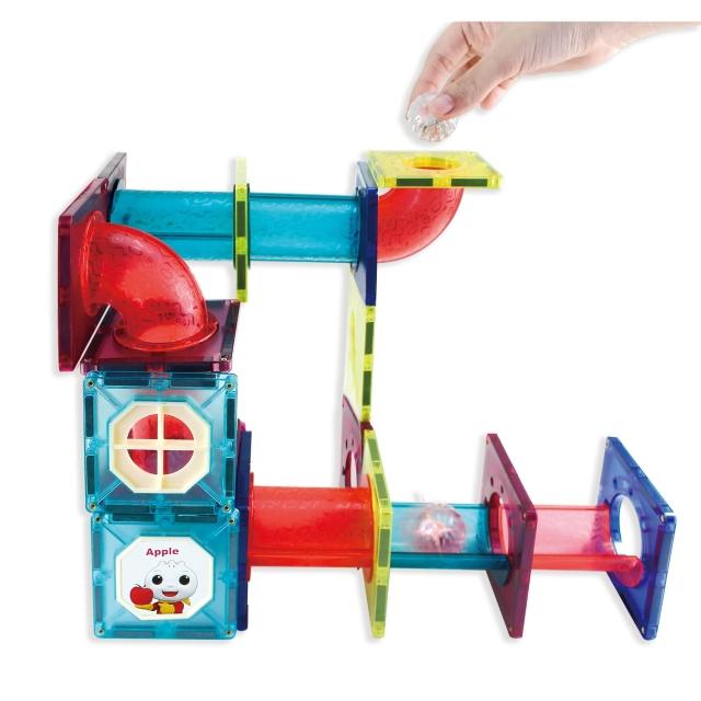 風車圖書(125pcs)風車 FOOD超人創意磁力片 極速滾球百變滑道(含滾球、磁力片、彎管+3張造型貼紙+示範手冊)
