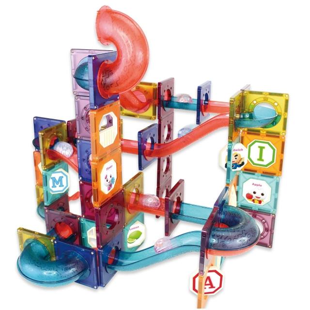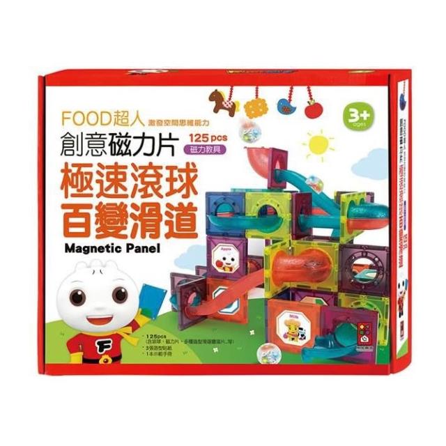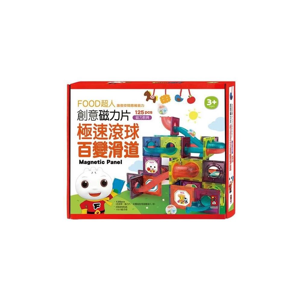 風車圖書(125pcs)風車 FOOD超人創意磁力片 極速滾球百變滑道(含滾球、磁力片、彎管+3張造型貼紙+示範手冊)