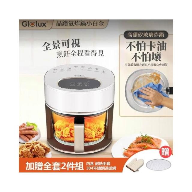 GloluxGlolux 智能觸控式晶鑽玻璃氣炸鍋AF3501+贈烘培紙+防燙手套+烤網 免運