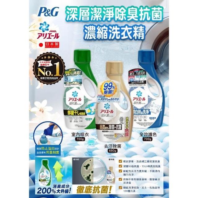 P&G(全效護色/藍)日本P&G ARIEL 全新升級 深層潔淨除臭抗菌濃縮洗衣精700g