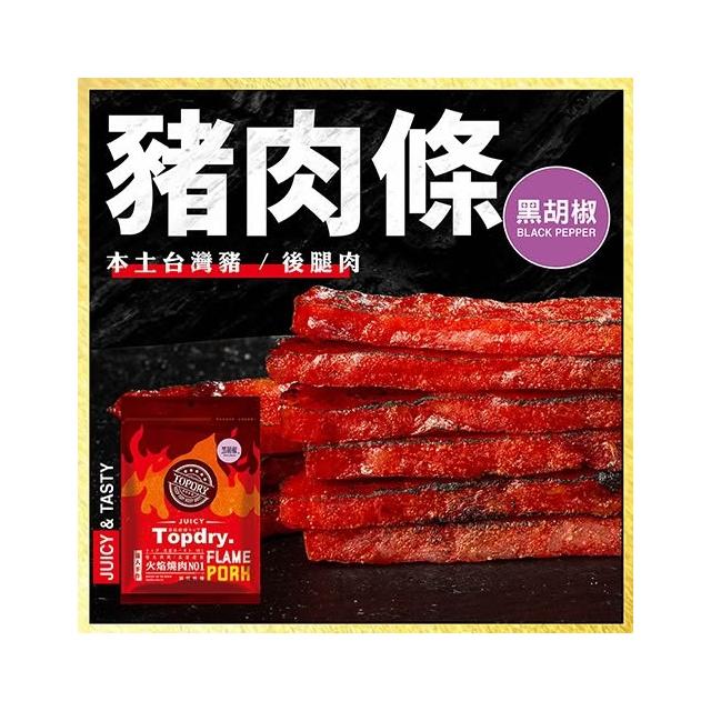 TOPDRY 頂級乾燥豬肉條160g(火燄蜜汁豬肉條/黑胡椒豬肉條/私藏岩燒豬肉乾)慢火烘烤/超嫩口感/每一根都是獨立真空包