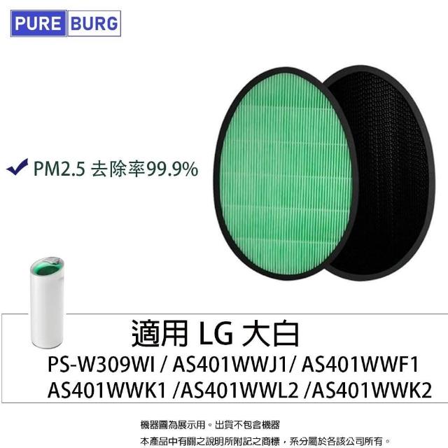 PUREBURG 適用LG直立式大白空氣清淨機PS-W309WI AS401WWJ1 AS401WWL2 副廠濾網組