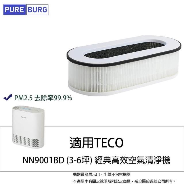 PUREBURG適用Teco 東元 NN9001BD (3-6坪) 經典高效空氣清淨機替換用HEPA活性碳濾網濾芯YZAN17