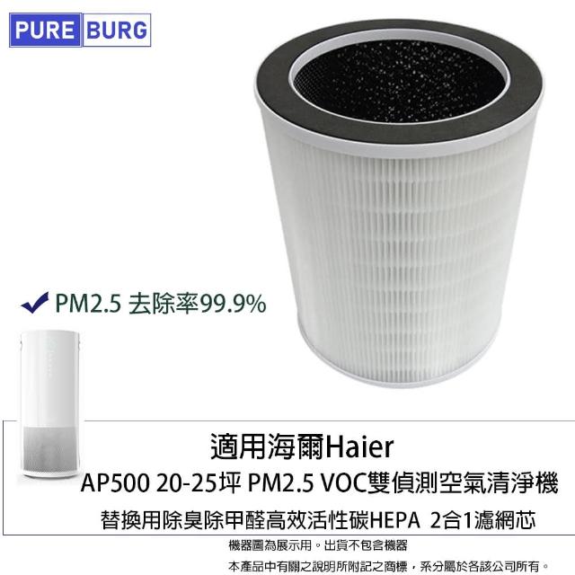 適用Haier海爾AP500 PM2.5 VOC雙偵測空氣清淨除臭除甲醛高效2合1活性碳HEPA濾網芯AP500F-01