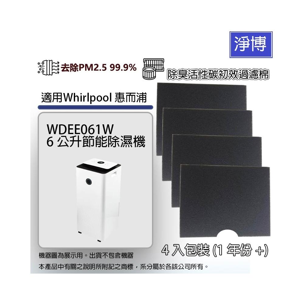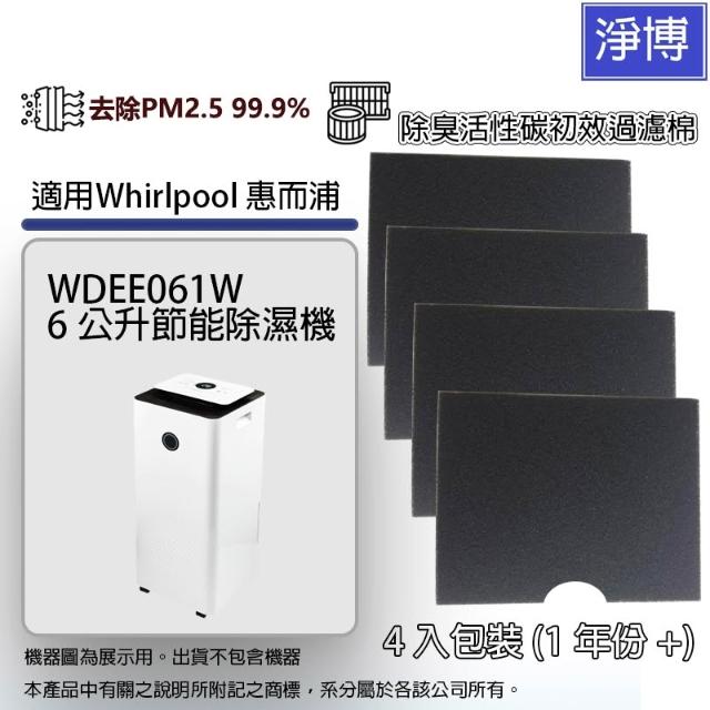 4入組-適用Whirlpool 惠而浦WDEE061W 6公升節能除濕機除臭活性碳初效過濾棉濾網