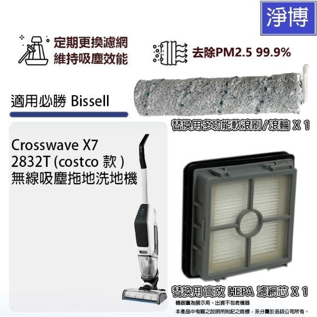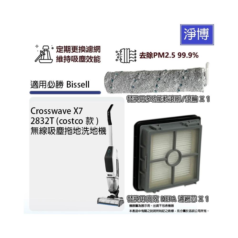 適用必勝Bissell X7 2832T(costco款) Crosswave無線吸塵拖地洗地機HEPA濾網濾芯滾輪滾刷