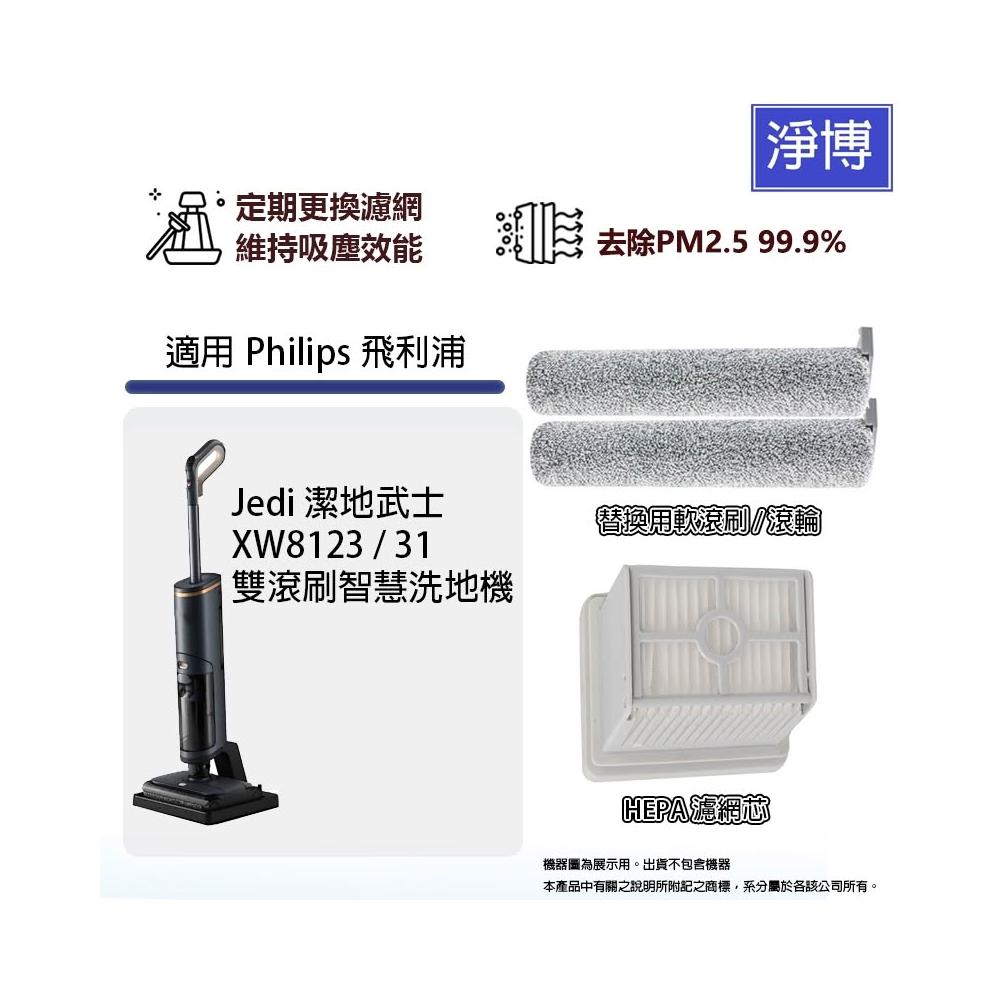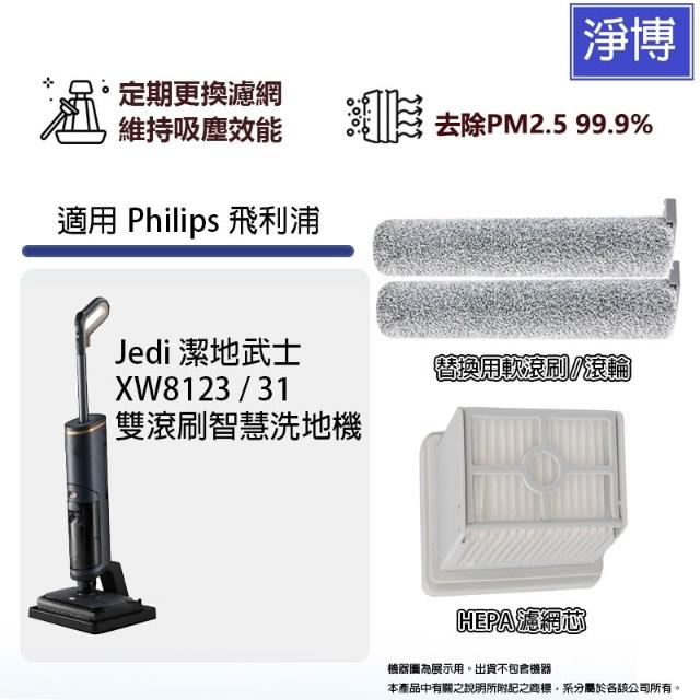 適用Philips 飛利浦Jedi 潔地武士 XW8123/31雙滾刷智慧洗地機拖地機HEPA濾網濾芯軟毛刷滾刷滾輪