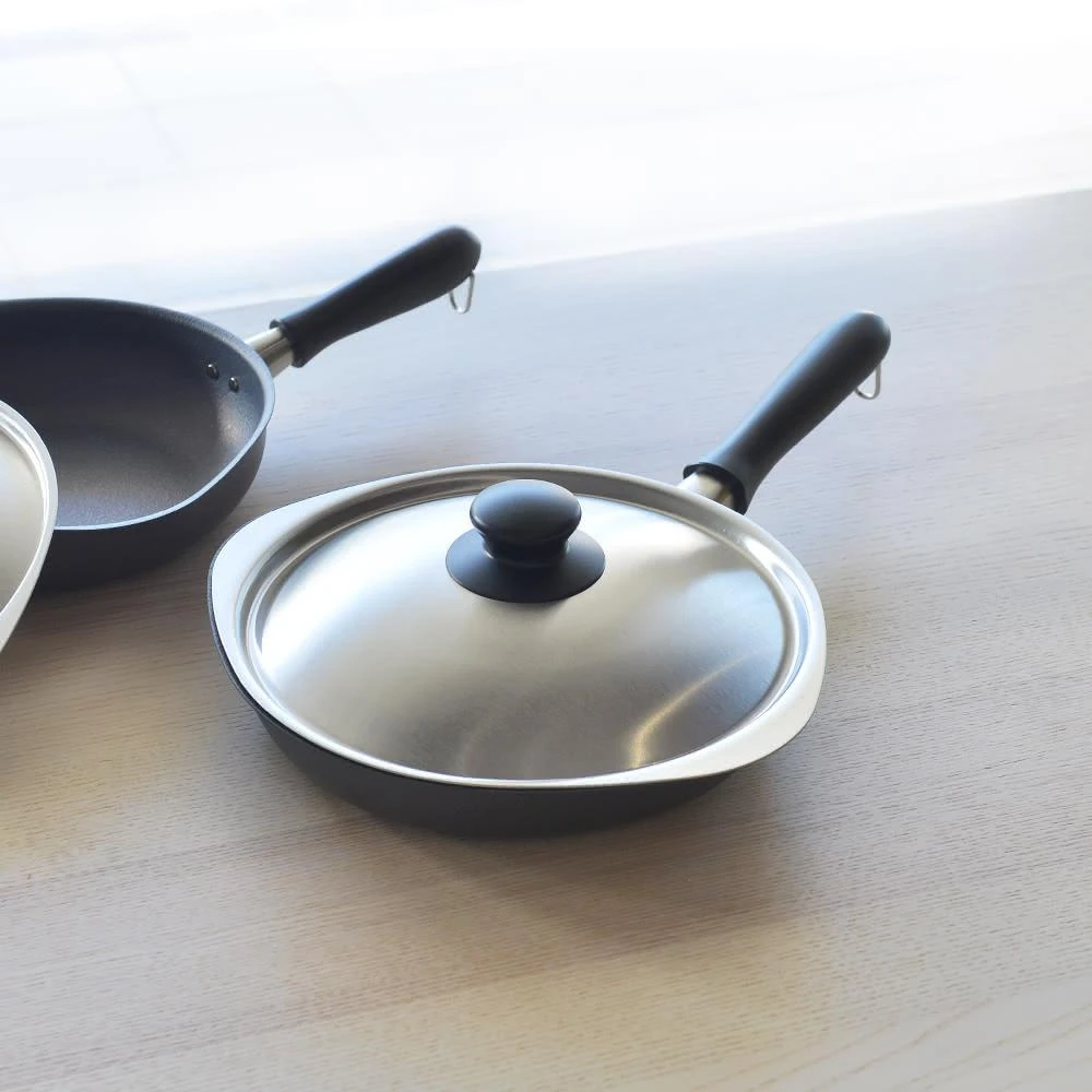柳宗理好歸覓選物所 日本製雙網紋/氮化加工鐵鍋附鍋蓋-22cm(平行輸入 窒化加工 Sori Yanagi)
