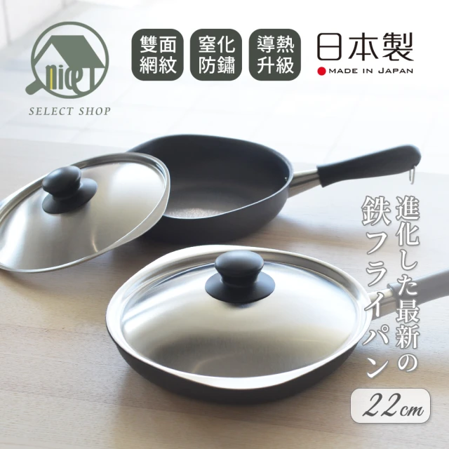 柳宗理好歸覓選物所 日本製雙網紋/氮化加工鐵鍋附鍋蓋-22cm(平行輸入 窒化加工 Sori Yanagi)