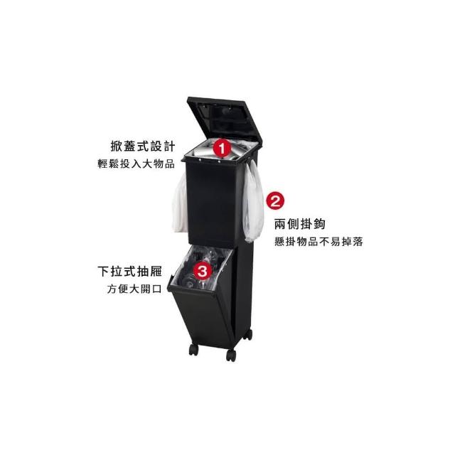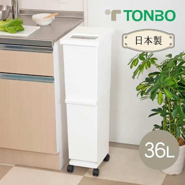 日本TONBO UNEED 日本製雙層分類垃圾桶附輪-36L-多色可選(多功能垃圾桶 掀蓋推蓋垃圾桶 隙縫垃圾桶)