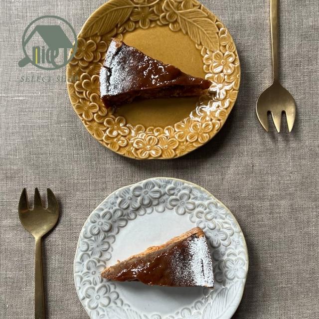 日本KANESAN 日本製美濃燒立體浮雕花陶瓷盤-大-多色可選(點心盤 餐盤 菜盤)