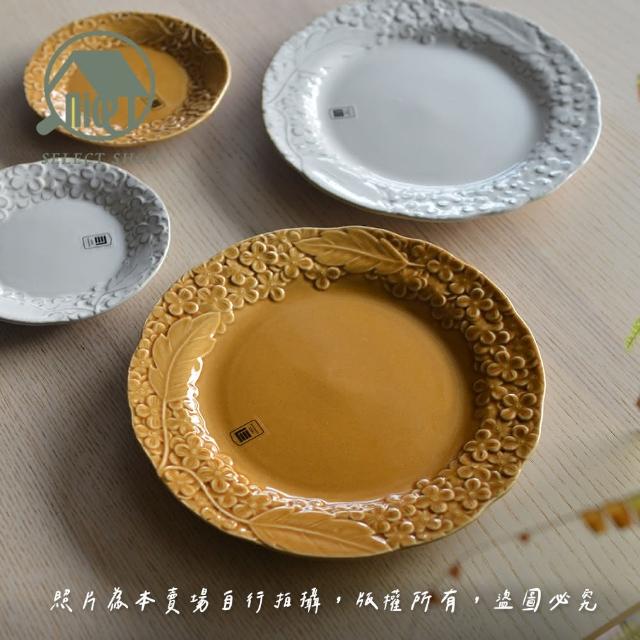 日本KANESAN 日本製美濃燒立體浮雕花陶瓷盤-大-多色可選(點心盤 餐盤 菜盤)