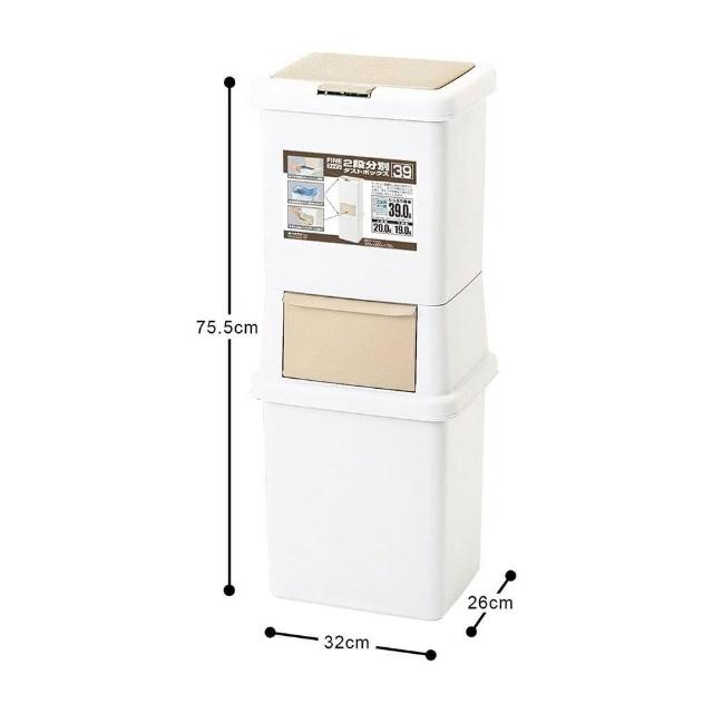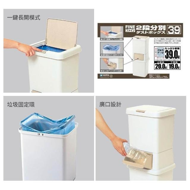 Sanko日本製雙層二段式分類垃圾桶-39L (彈蓋垃圾桶 按壓式垃圾桶 掀蓋垃圾桶)