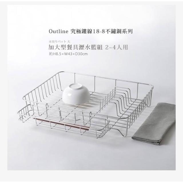 大木金屬 Outline 日製究極鏤線18-8不鏽鋼加大型餐具瀝水籃(附筷架&吸水墊)