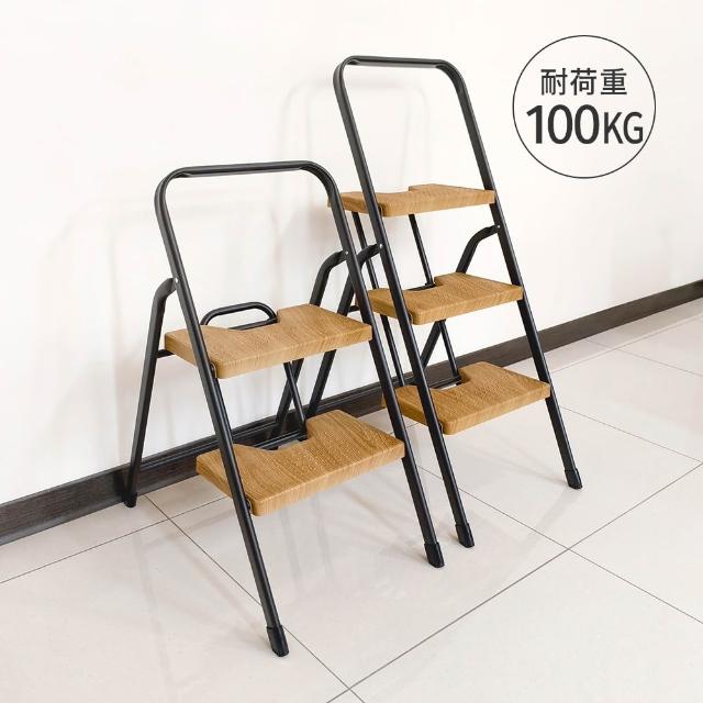 CB JAPAN家用橡木紋寬踏板摺疊梯-多款可選 (折疊梯/踏板梯/二階/三階)