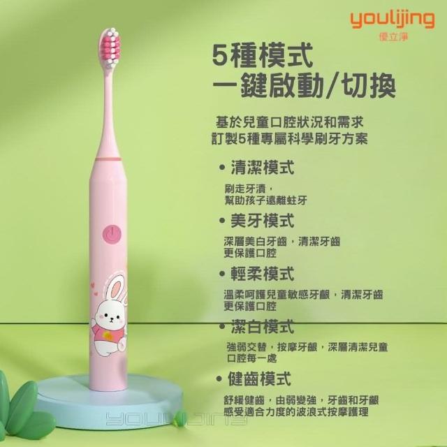 youlijing 優立淨 兒童電動牙刷(5歲以上兒童適用 4隻刷頭 充電線)