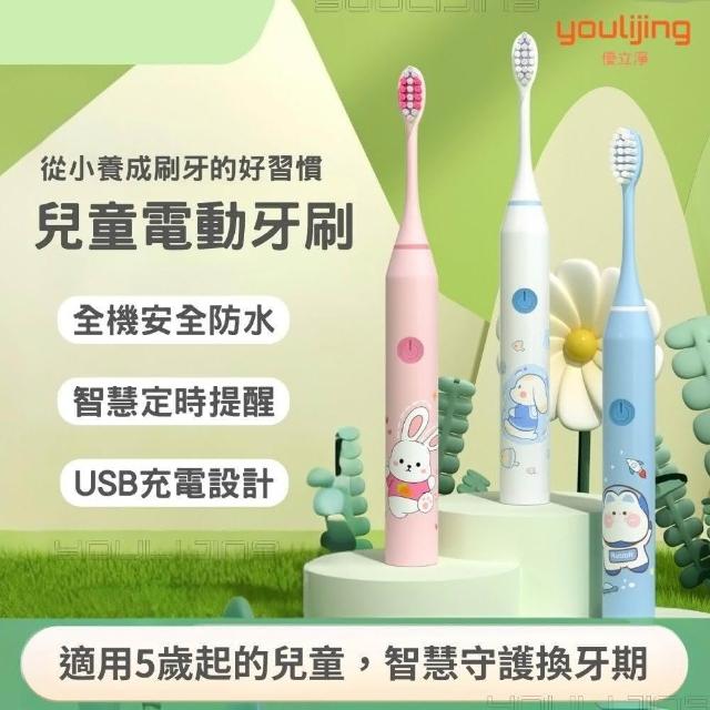 youlijing 優立淨 兒童電動牙刷(5歲以上兒童適用 4隻刷頭 充電線)
