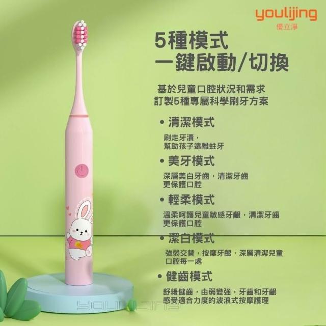 youlijing 優立淨 兒童電動牙刷(5歲以上兒童適用 4隻刷頭 充電線)
