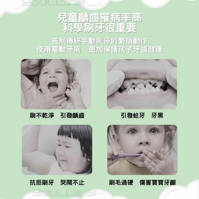 youlijing 優立淨 兒童電動牙刷(5歲以上兒童適用 4隻刷頭 充電線)