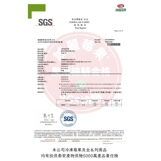誠麗莓果IQF急速冷凍草莓(產地直送檢驗合格特選A級草莓果粒 1KG/包)