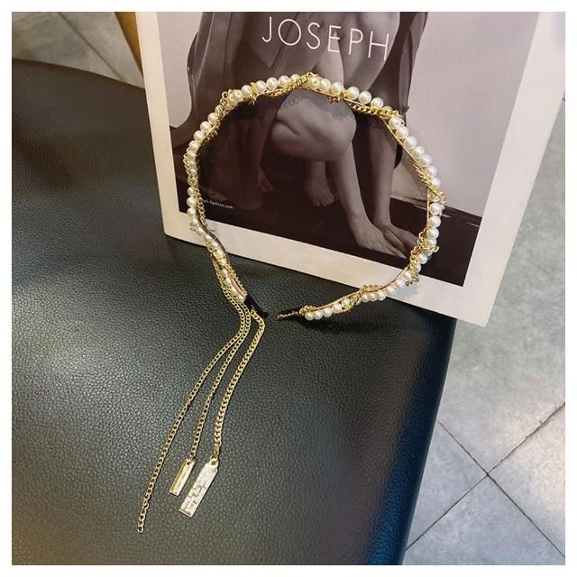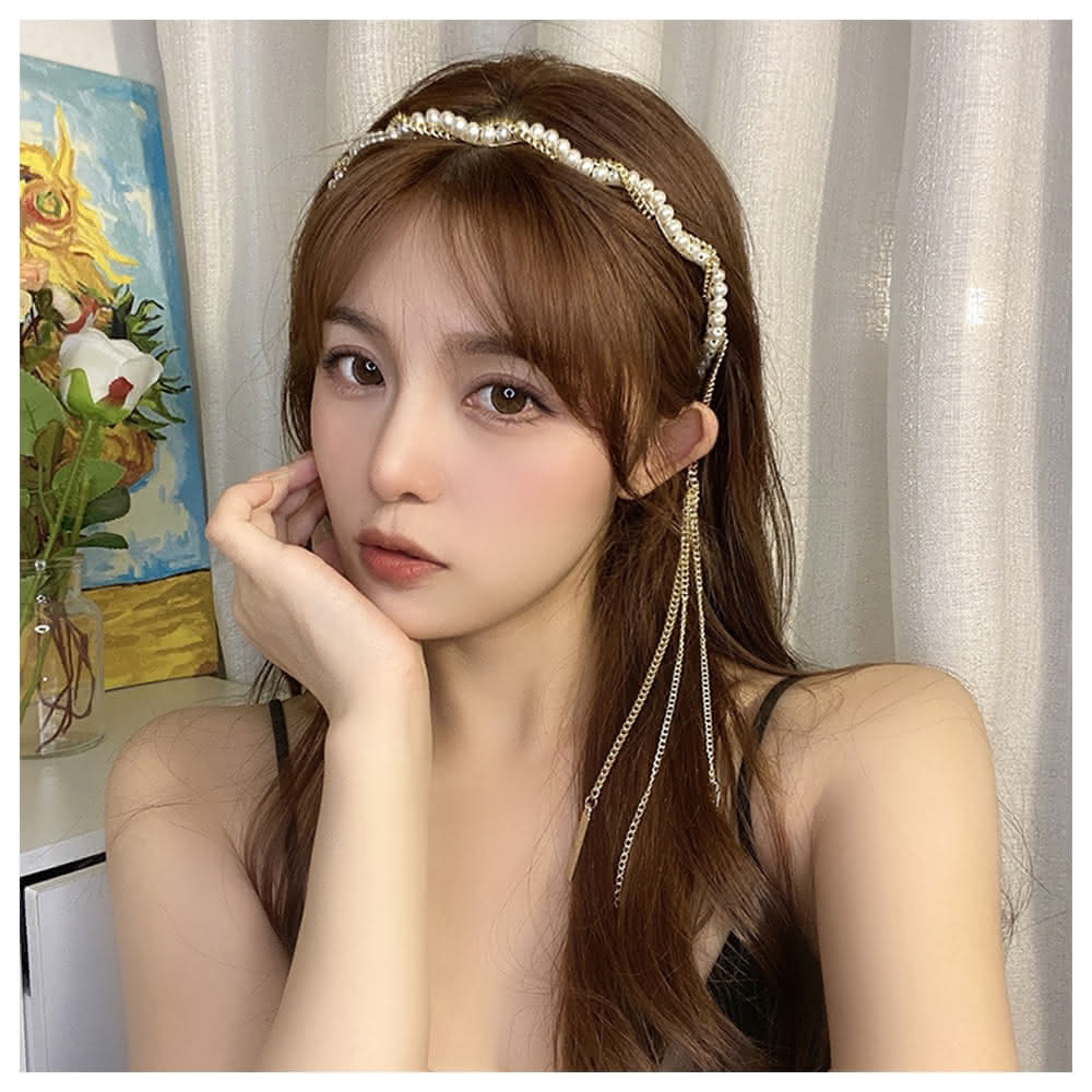 HaNA 梨花夢幻小日子.細緻珍珠纏繞流蘇耳環一體髮箍
