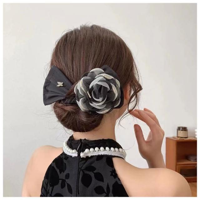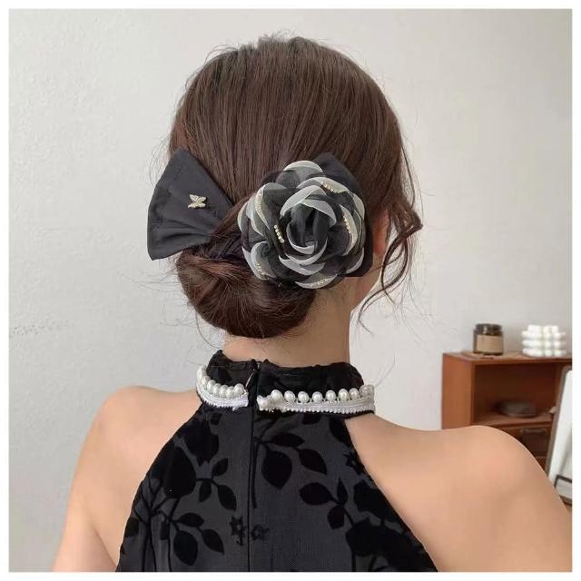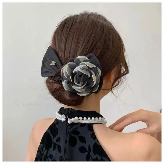 HaNA 梨花女人一支花.極緻高級灰山茶花扭扭夾盤髮夾