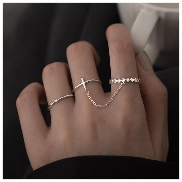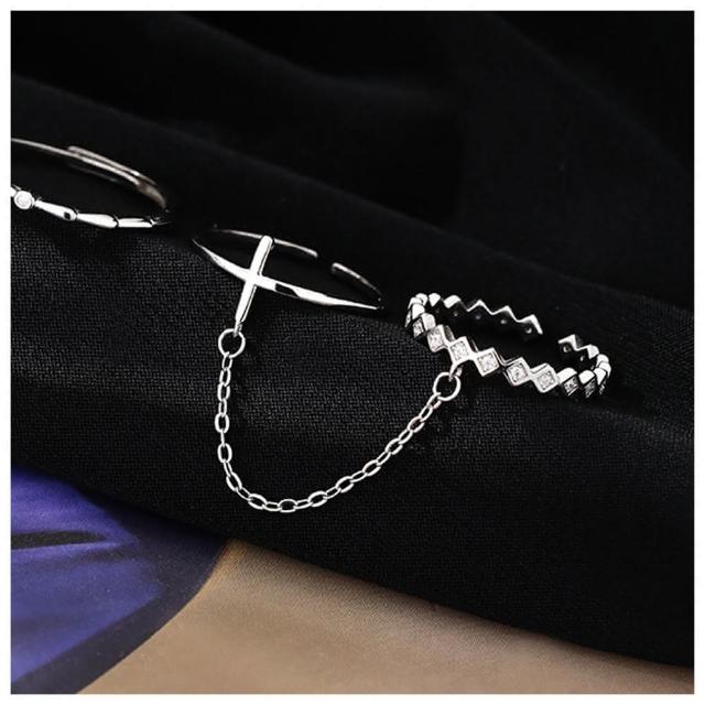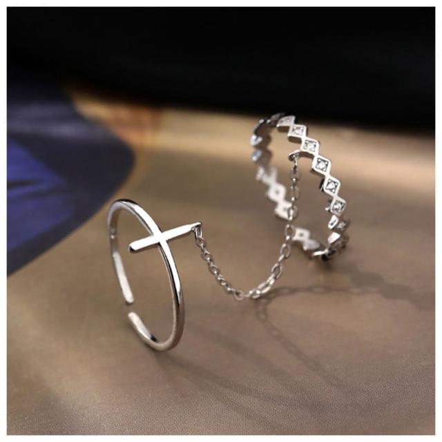 HaNA 梨花韓國.酷女孩時刻十字架鏈條TWINS雙戒指