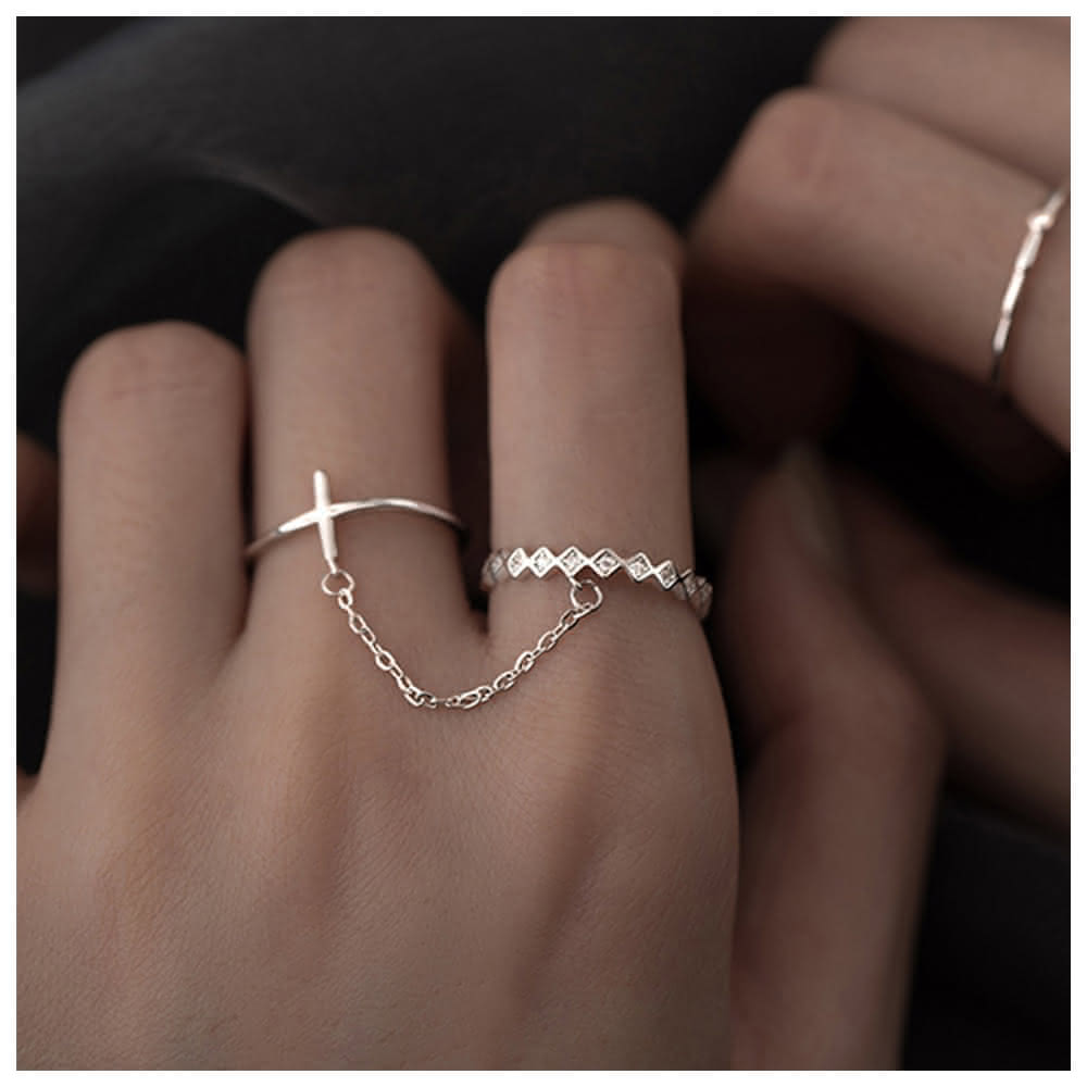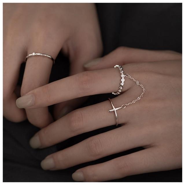 HaNA 梨花韓國.酷女孩時刻十字架鏈條TWINS雙戒指