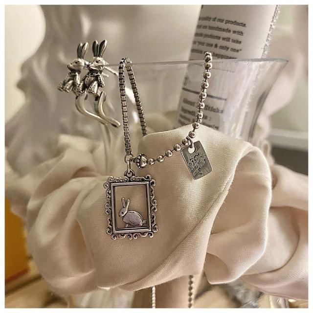 HaNA 梨花韓國波光閃閃愛麗絲夢遊.仙境小兔子項鍊/耳環