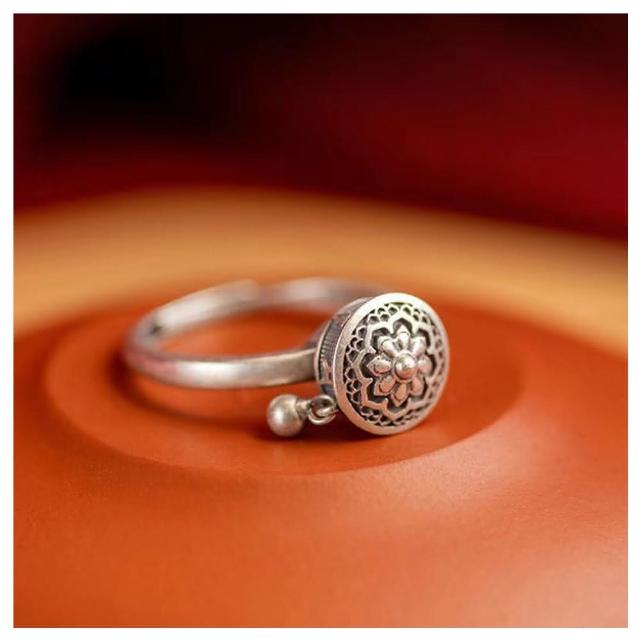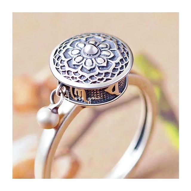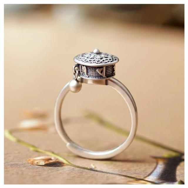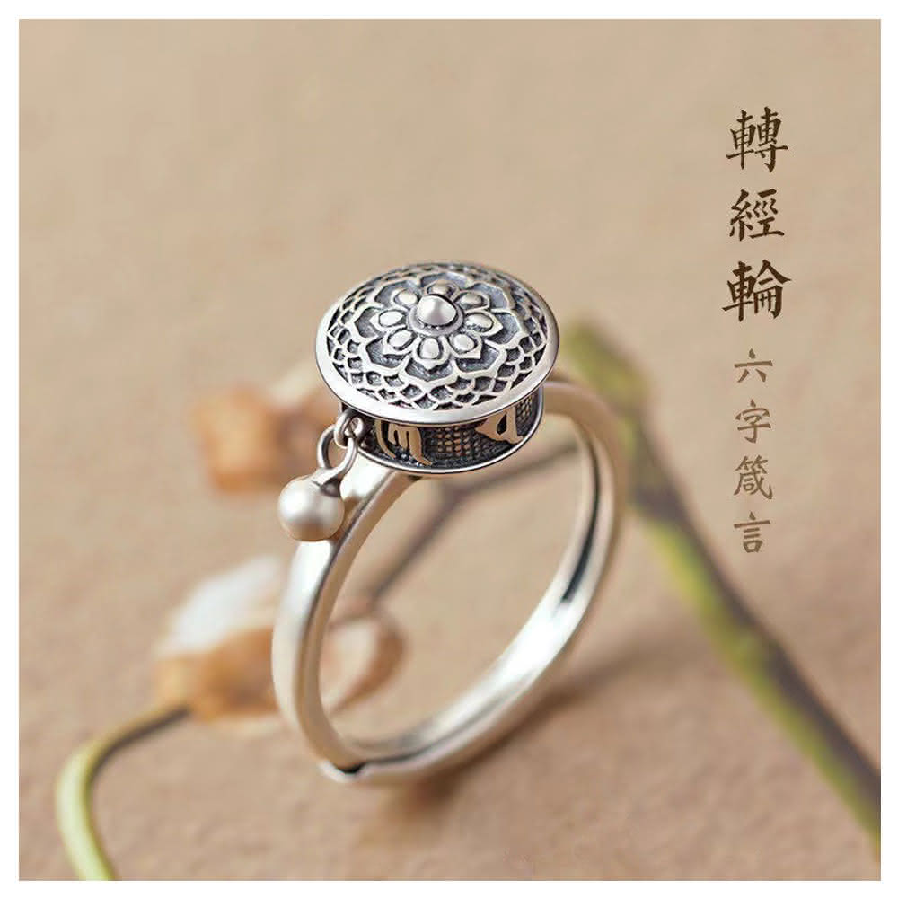 HaNA 梨花古銀祈福轉經輪戒指.轉經筒六字箴言可轉動戒指