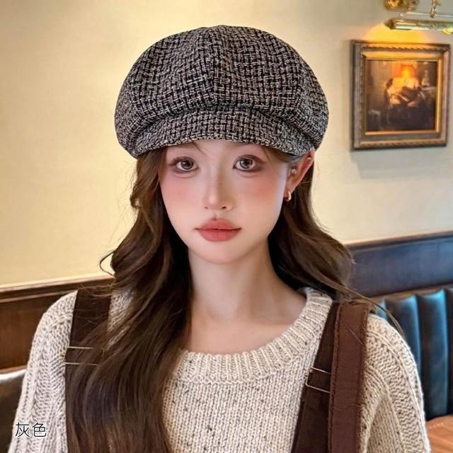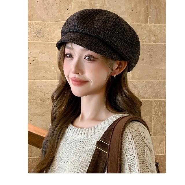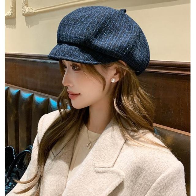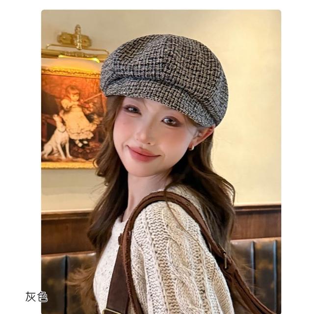 HaNA 梨花買一送一贈圍脖 巴黎街頭感復古格紋報童帽
