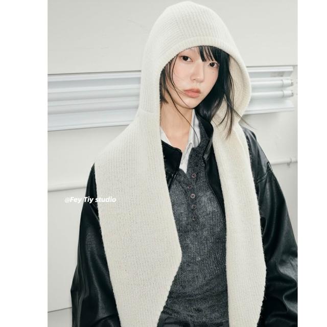 HaNA 梨花梨花HaNA】韓國空運 something needs純粹毛帽圍巾一體 保暖護耳