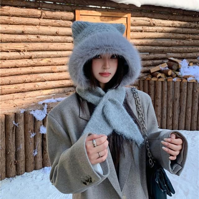 HaNA 梨花【梨花HaNA】溫柔少女系冬日氣氛感 法式貓耳暖冬圍巾毛帽