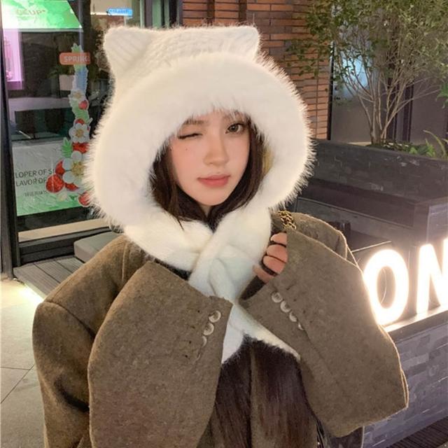 HaNA 梨花【梨花HaNA】溫柔少女系冬日氣氛感 法式貓耳暖冬圍巾毛帽