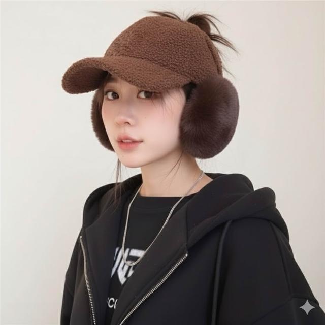 HaNA 梨花【梨花HaNA】可愛又保暖的冬日神器 可拆式毛毛耳罩棒球帽