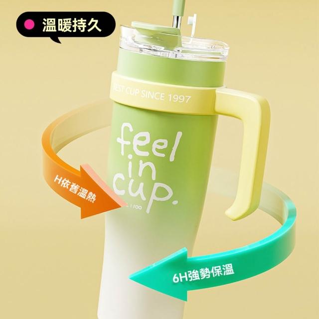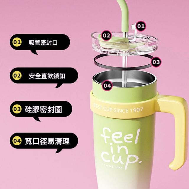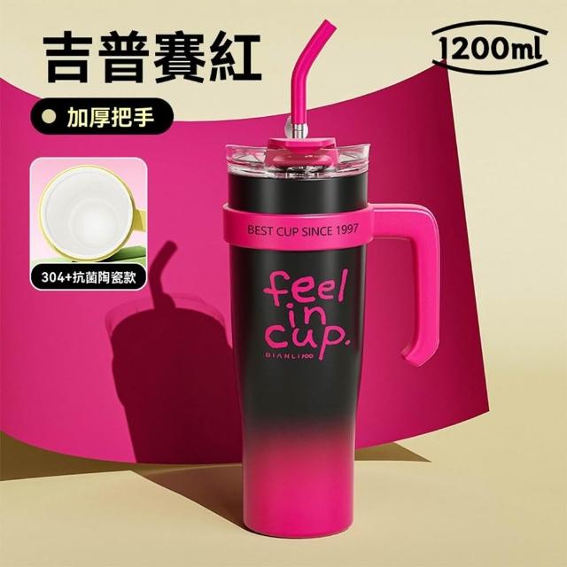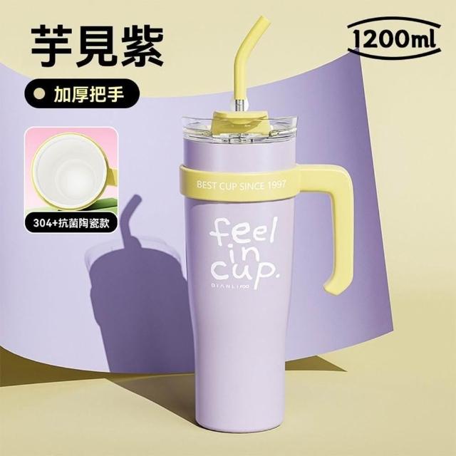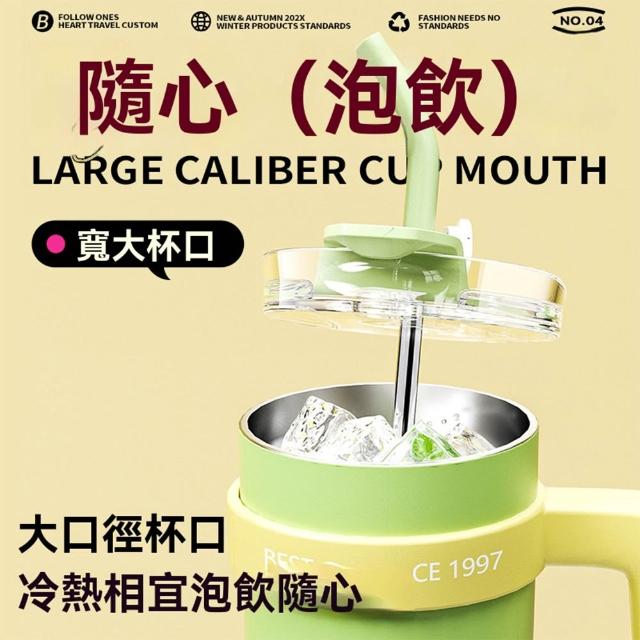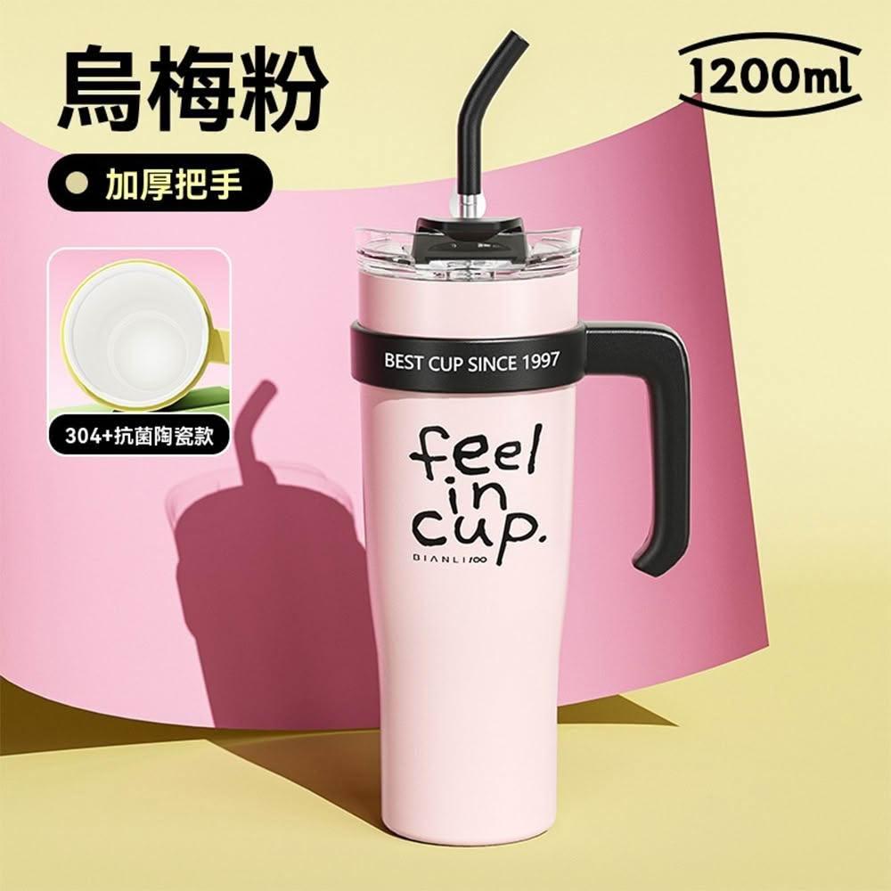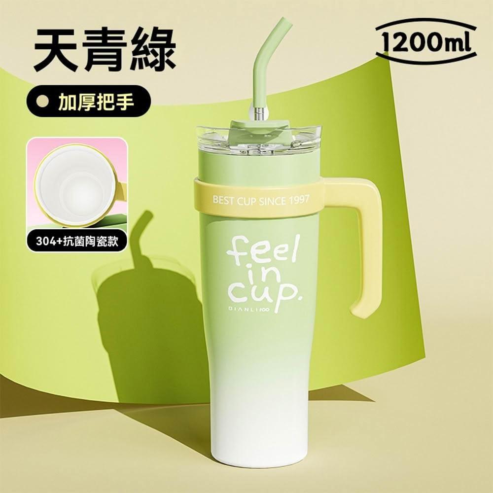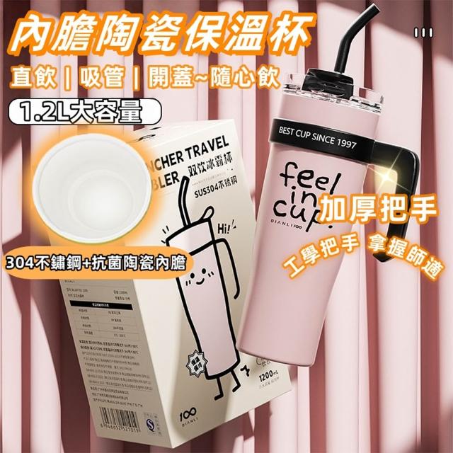 1200ml陶瓷內膽保溫杯 冰霸杯304不鏽鋼 吸管直飲兩用 防漏密封 咖啡隨行杯 大容量水壺