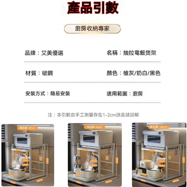 抽拉電器架 電器櫃 伸縮電器架 家電置物架 厨房置物架 電飯鍋置物架 伸縮櫥櫃 層架 收納置物架 廚房收納架 廚櫃置物架