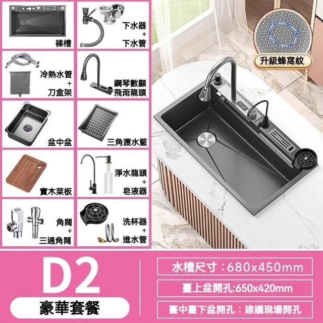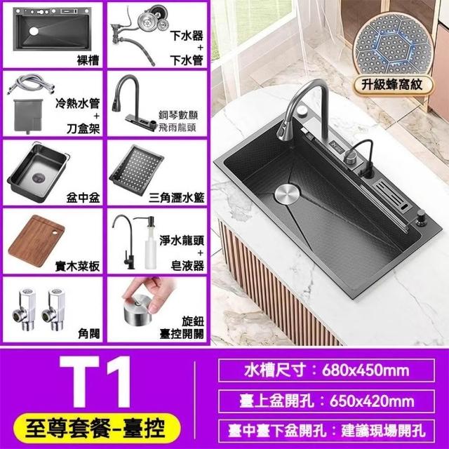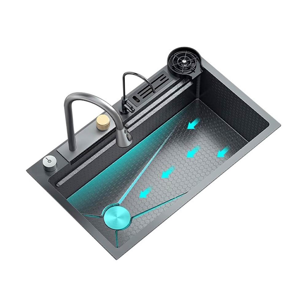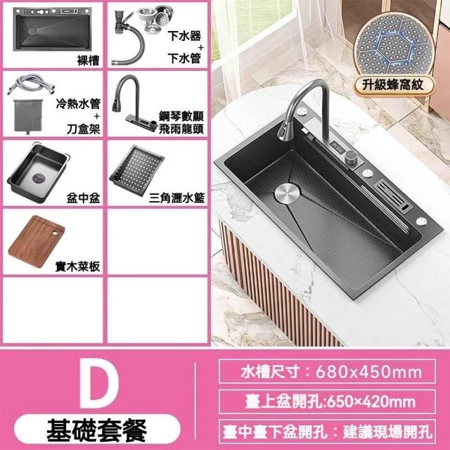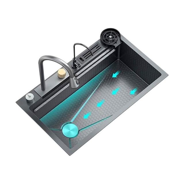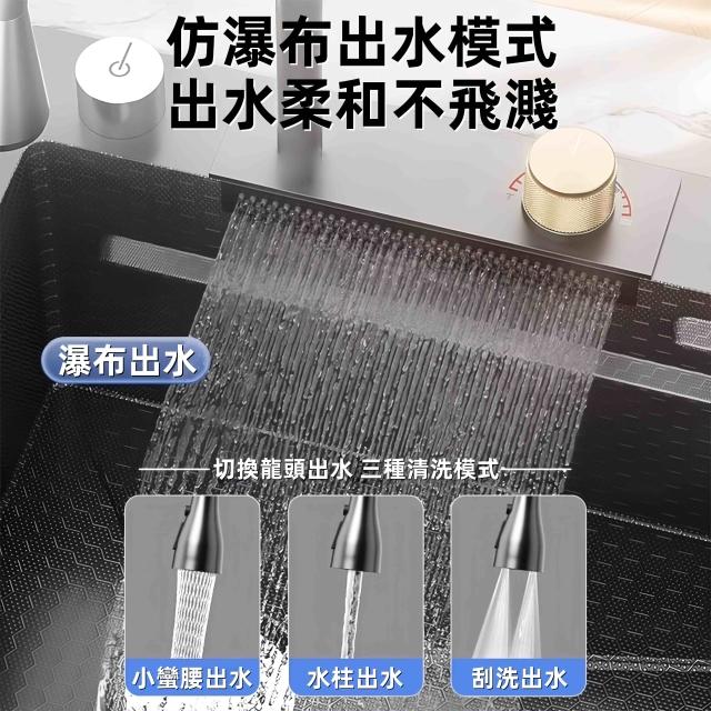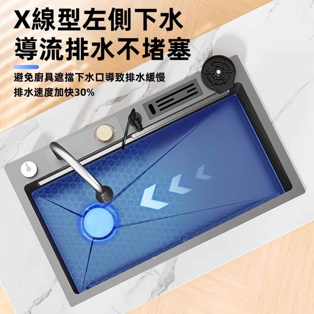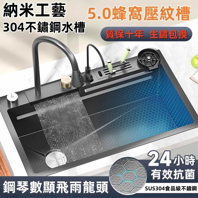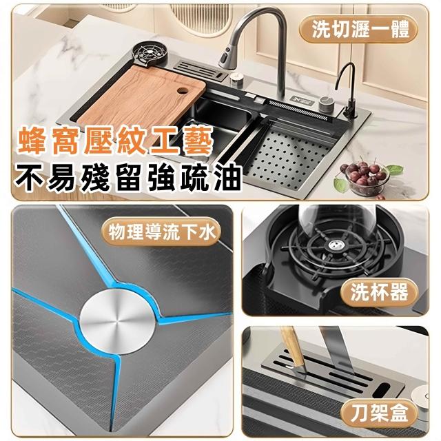 廚房304不鏽鋼水槽 飛羽瀑布水槽 洗菜盆 洗碗盆 洗碗槽 SUS304不鏽鋼大單槽 鋼琴數顯 顯示水溫 納米蜂窩壓紋