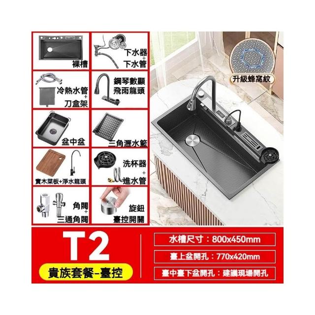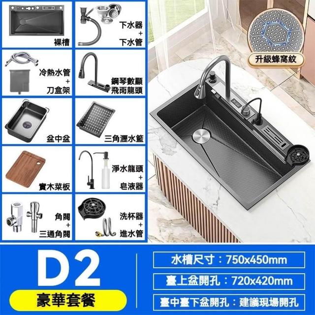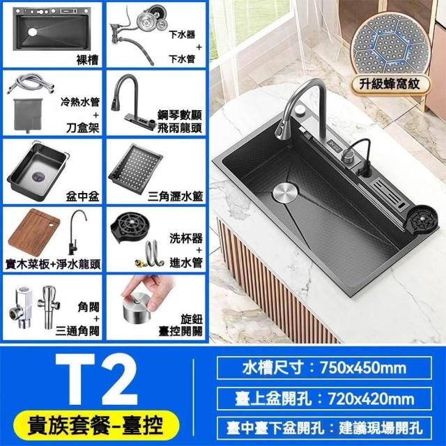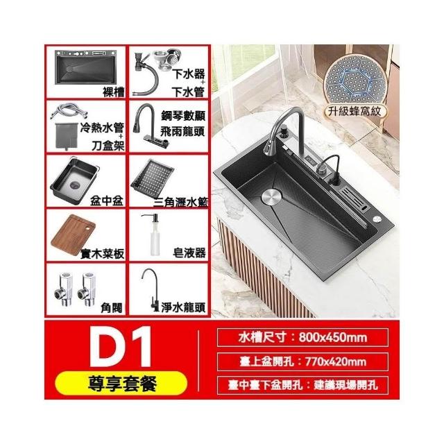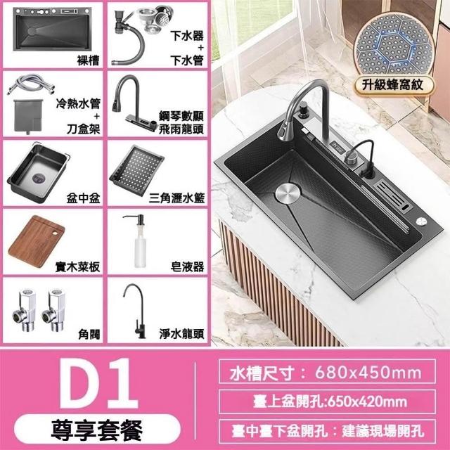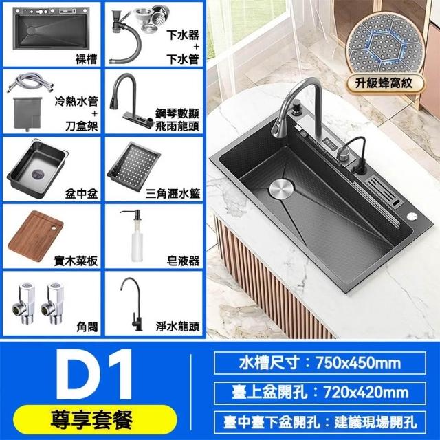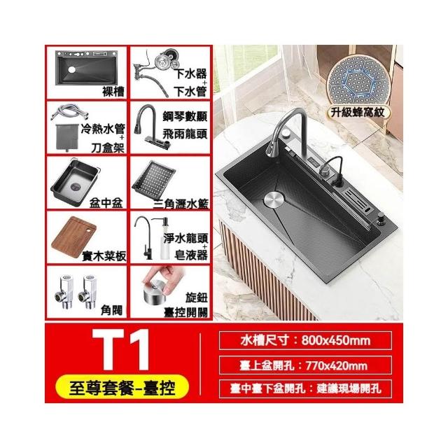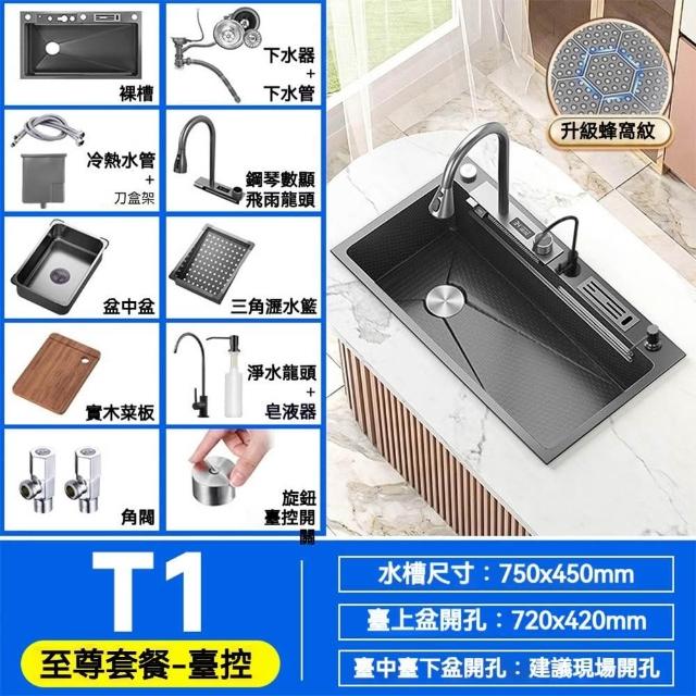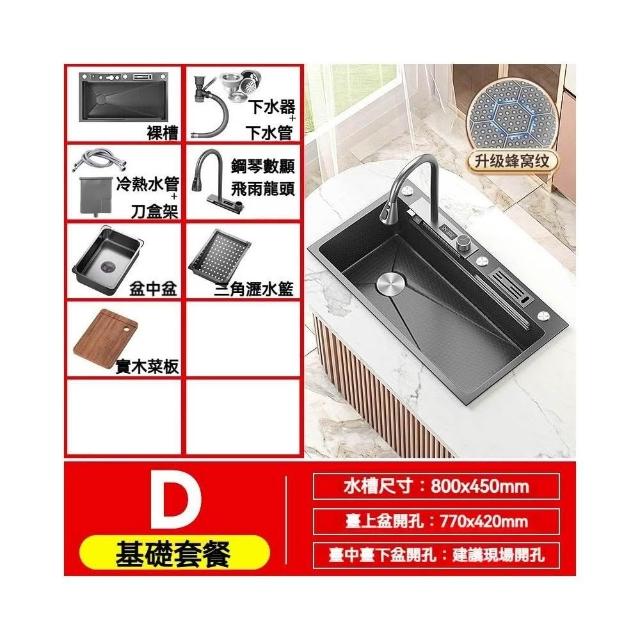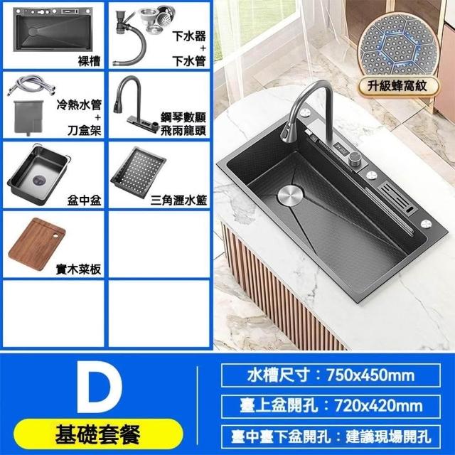 廚房304不鏽鋼水槽 飛羽瀑布水槽 洗菜盆 洗碗盆 洗碗槽 SUS304不鏽鋼大單槽 鋼琴數顯 顯示水溫 納米蜂窩壓紋