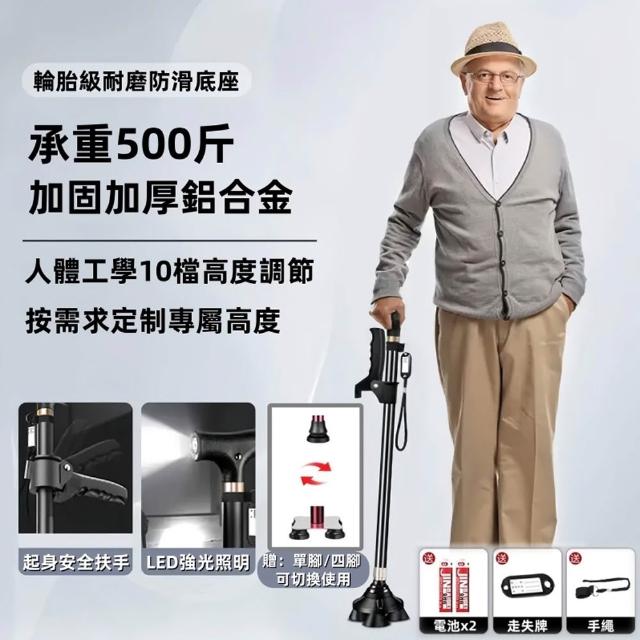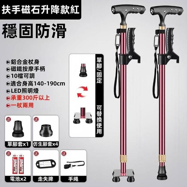 磁石按摩老人升降鋁合金拐杖 單腳/四腳/大四腳可切換 照明拐杖 拐杖助行器 拐棍 手杖 老年人拐杖 四腳杖 拐杖腳墊
