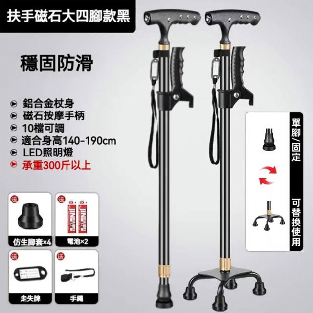 磁石按摩老人升降鋁合金拐杖 單腳/四腳/大四腳可切換 照明拐杖 拐杖助行器 拐棍 手杖 老年人拐杖 四腳杖 拐杖腳墊