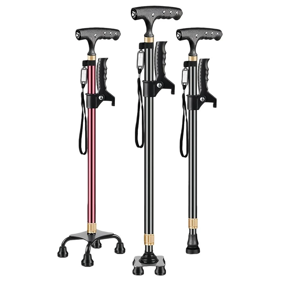 磁石按摩老人升降鋁合金拐杖 單腳/四腳/大四腳可切換 照明拐杖 拐杖助行器 拐棍 手杖 老年人拐杖 四腳杖 拐杖腳墊