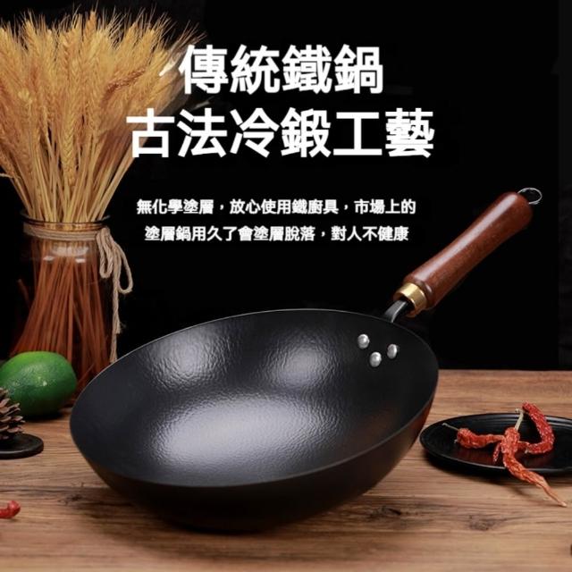 章丘鐵鍋 不沾鍋 炒鍋 34cm 老式炒鍋 炒菜鍋 煎鍋 輕量化鐵鍋 鍋子 家用手工鍛打無塗層炒鍋 適用燃氣爐