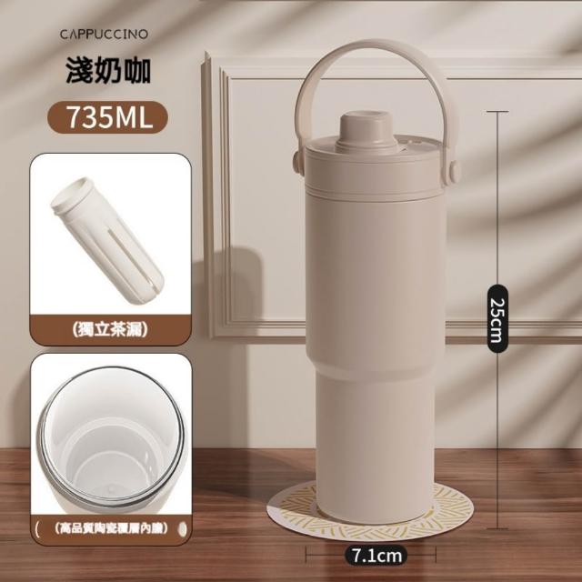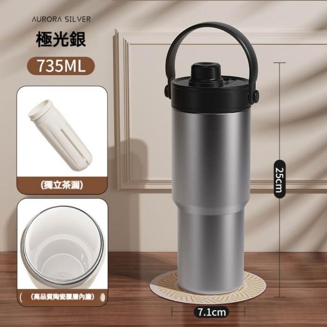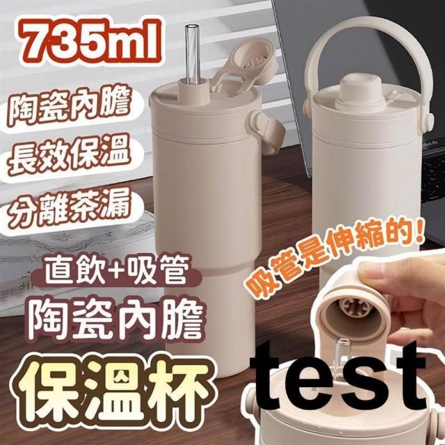 735ml陶瓷內膽保溫杯 吸管直飲兩用 防漏密封 長效保溫保冷 通勤上班學生隨行杯 水壺推薦