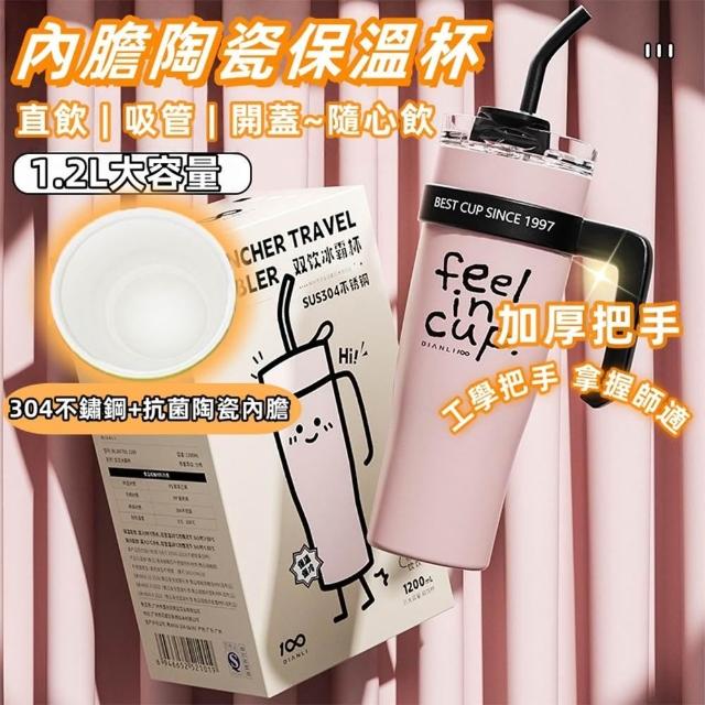 1200ml冰霸杯|陶瓷內膽不殘味|吸管直飲|防漏保溫杯