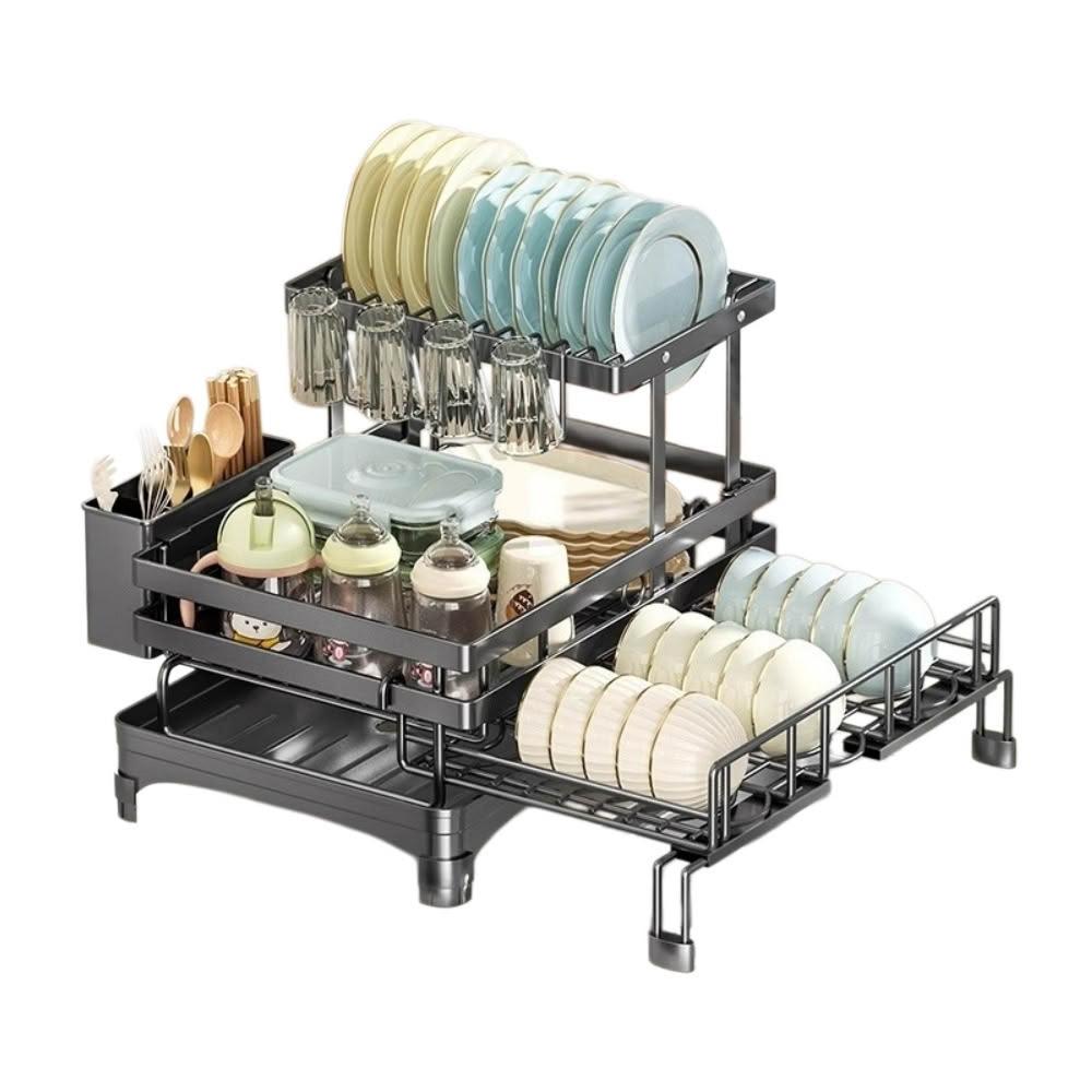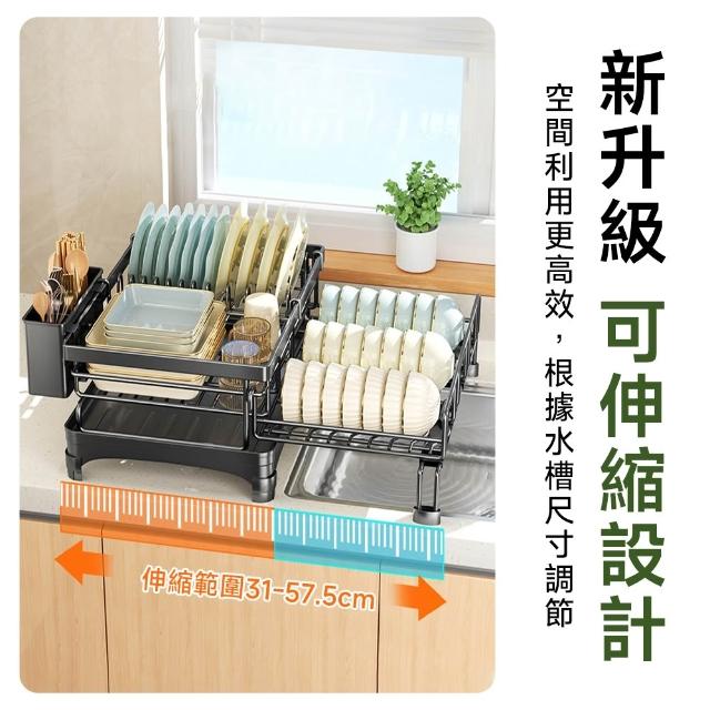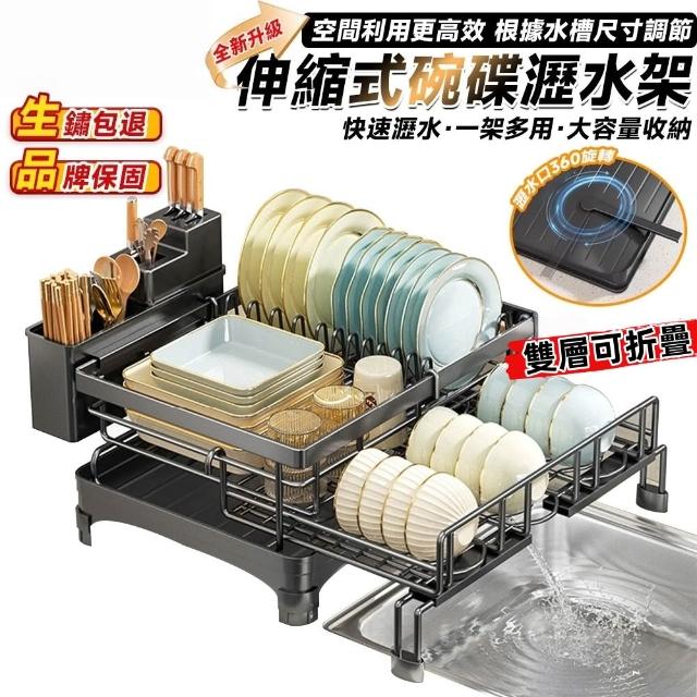 可伸縮碗碟瀝水架 廚房置物架 餐具瀝水架 碗碟收納架 碗筷瀝水籃 可折疊伸縮 穩固承重 防潮防鏽
