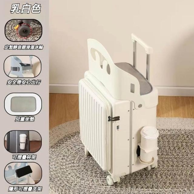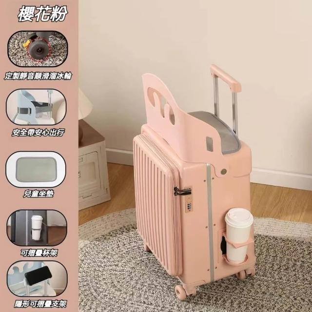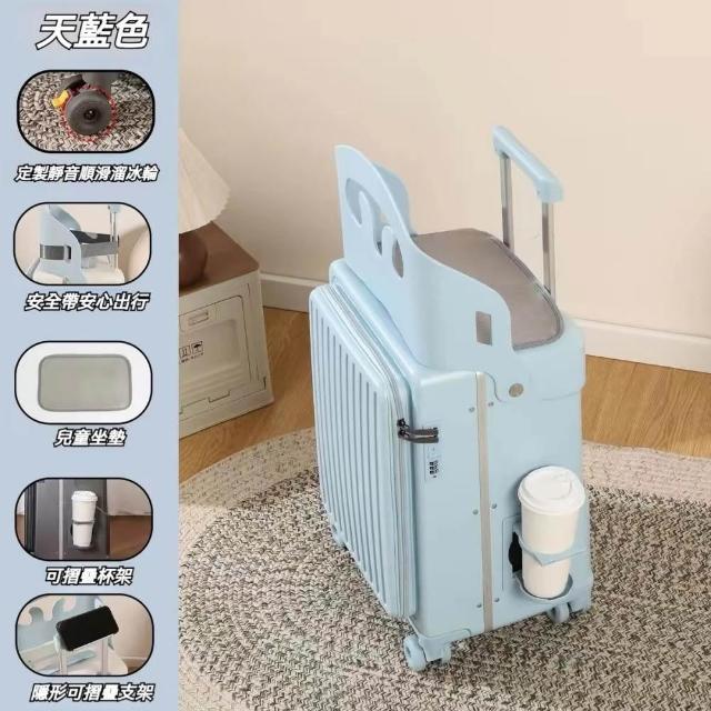 兒童行李箱可坐騎 24吋行李箱 多功能拉桿箱 拉鍊行李箱 靜音萬向輪 附安全帶 手機支架 杯架 密碼鎖 旅行收納箱