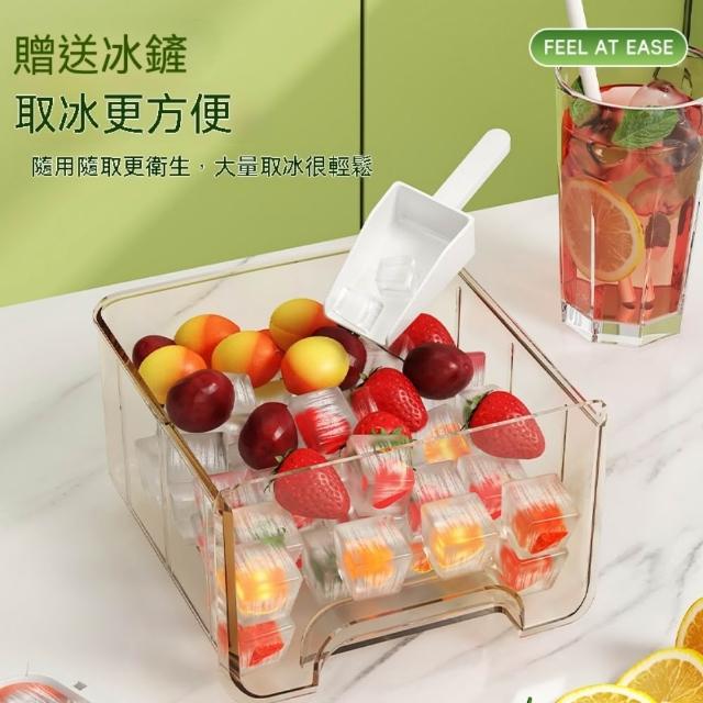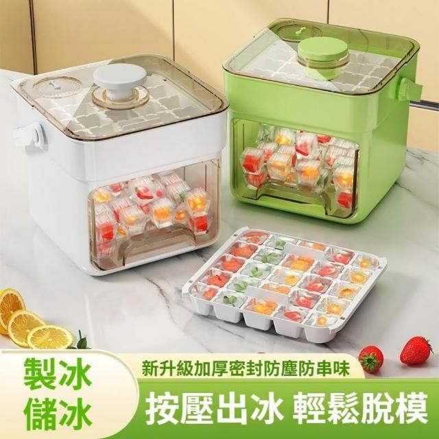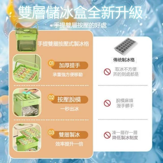 一按出冰!雙層按壓式製冰盒 手提儲冰桶 食品級冰格 冰箱凍冰塊神器 不髒手脫模冰塊盒